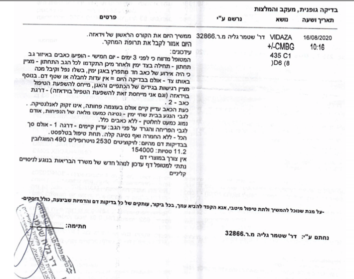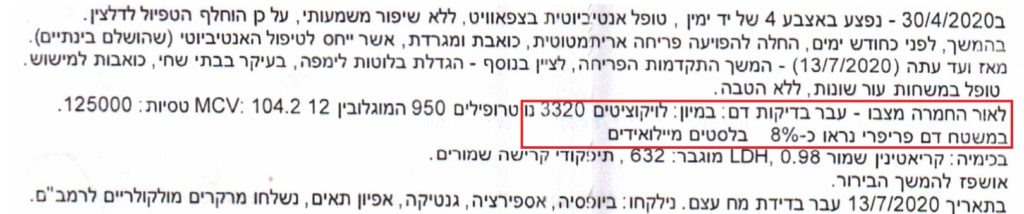 צעדיי הראשונים במחלה היו עם המוגלובין 5. היום, 8.6. נורמה.