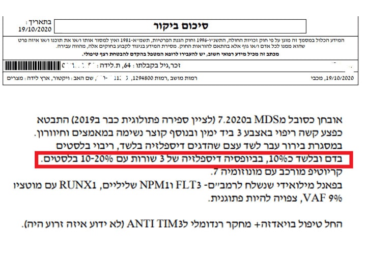 אתה במצב סיכון בינוני לפתח לוקמיה, אתה חייב לנסות’.